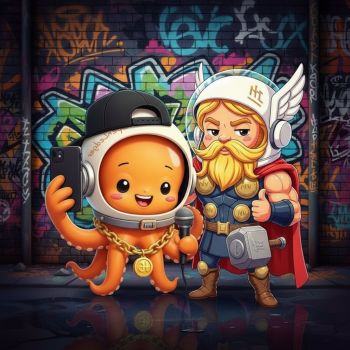 Photorealistic smartphone selfie of the first person and the second person together. Use the background from the first person's phot....